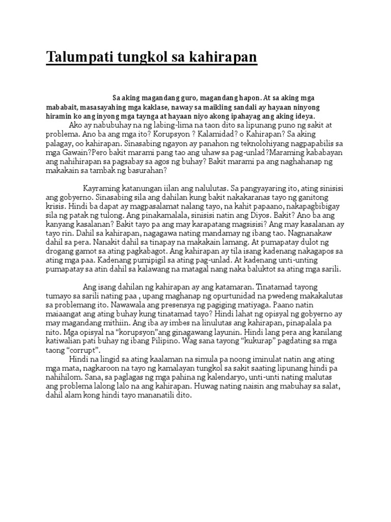 Talumpati Tungkol Sa Kahirapan Pdf
