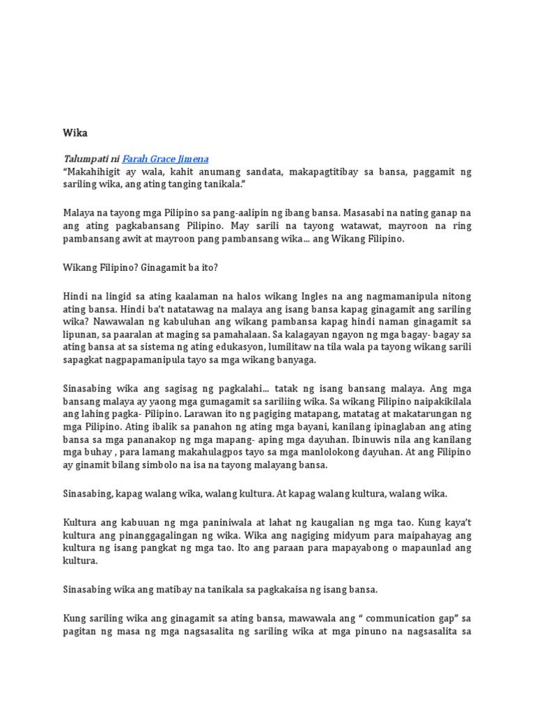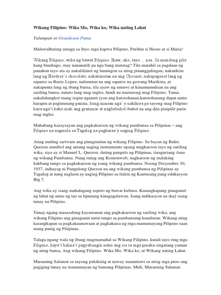 Huwag tayong magpa-alipin ng tuluyan sa ating puso. Leave a Comment Cancel reply. Talumpati Tungkol Sa Wika.