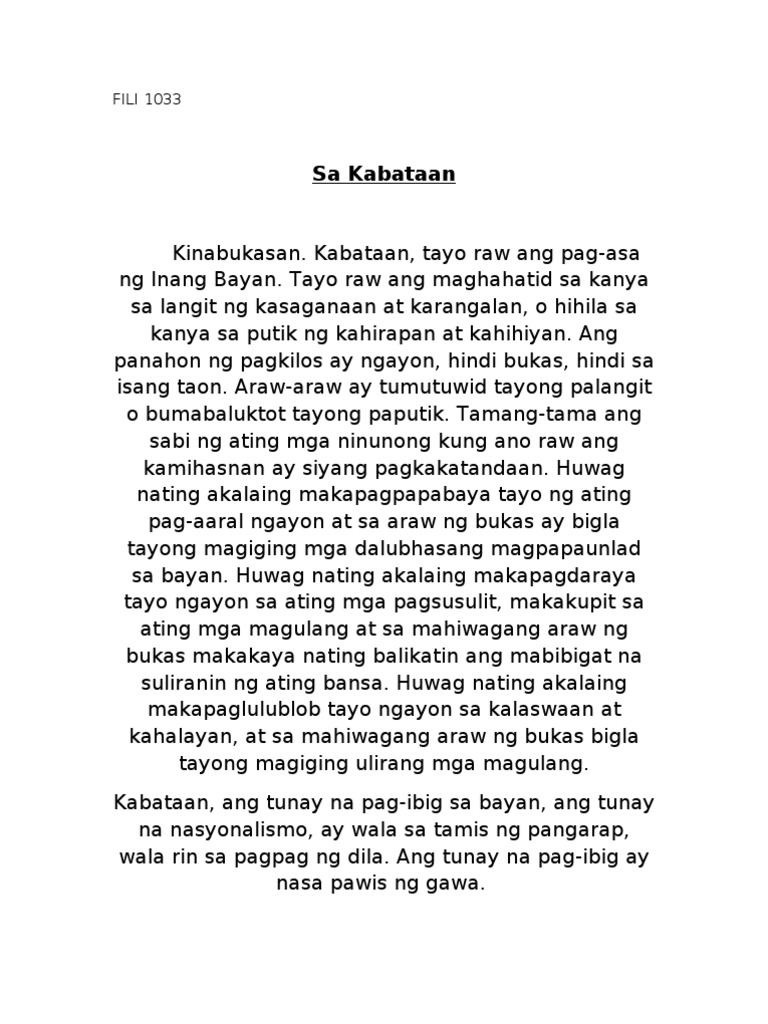 Tula tungkol sa kalikasan tagalog sa region 1. Ngunit kung titingnan ngayoy iba na itomadumi halos wala nang kagubatan kayumangging tubig at extinct na mga hayop. Siguro kung naririnig lang natin ang sigaw ng kalikasan ay binging-bingi na tayo.